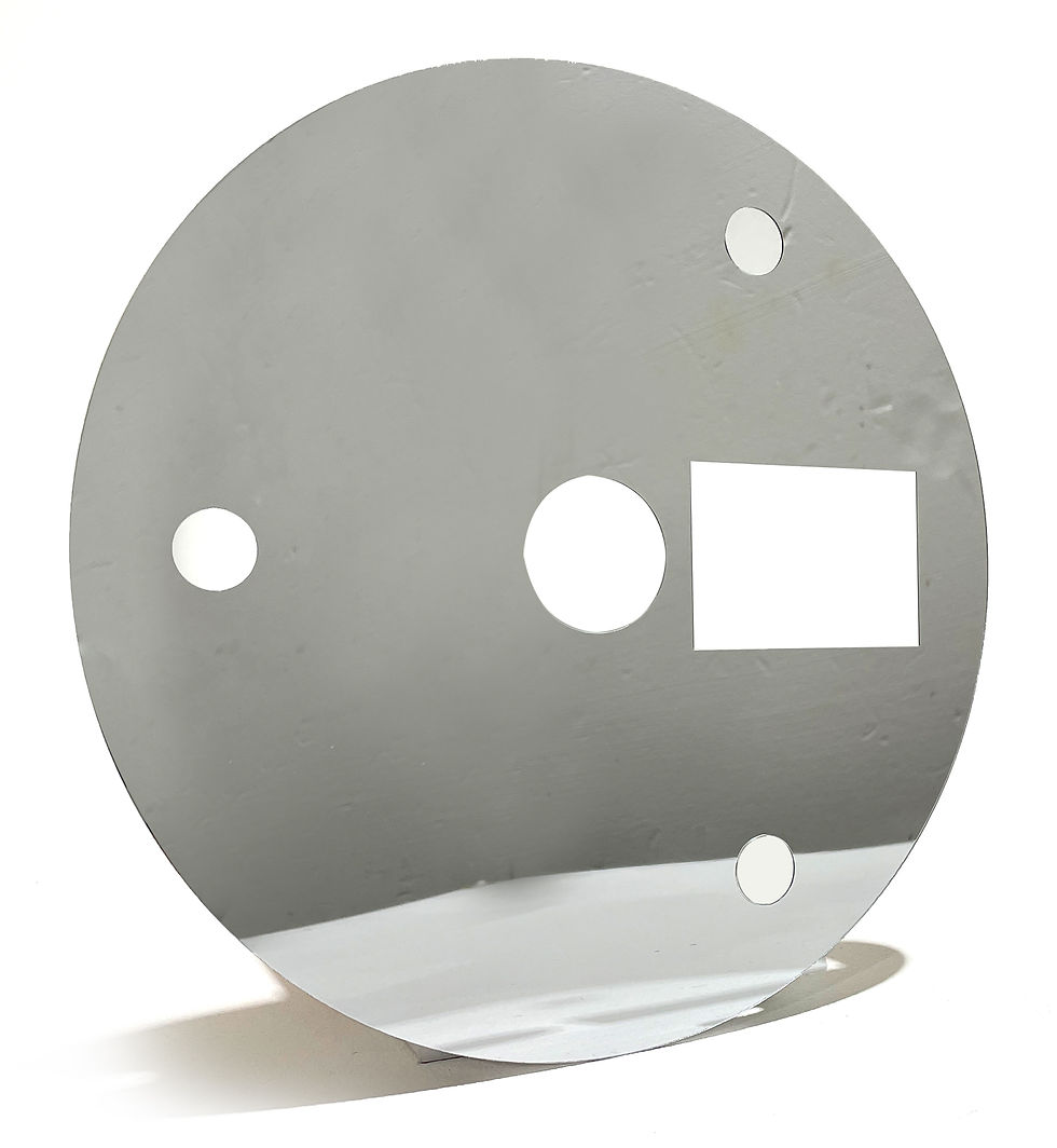 - Lasercut from acrylic mirror.